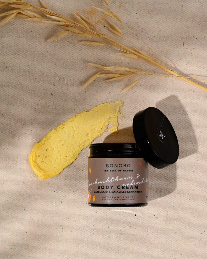 The Sea-Buckthorn & Calendula Body Cream comes in bright orange colour and has a captivatingly full-bodied scent. It softens and moisturizes your skin. Sea-buckthorn berries are one of nature’s most perfect sources of herbal vitamins. The berries, stalks, roots and leaves of sea-buckthorns have been used for thousands of years. When used externally, sea-buckthorn improves the skin’s metabolism and accelerates the healing of wounds. Calendula is like a small sun that brings shine to your days. It is also anti-inflammatory and antibacterial.